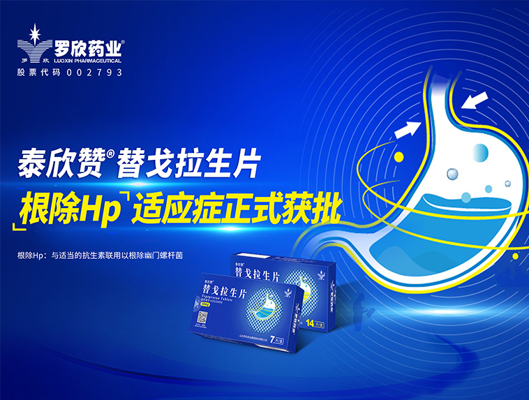 羅欣藥業(yè)創(chuàng)新藥替戈拉生片(商品名:泰欣贊?)新適應癥“與適當的抗生素聯(lián)用以根除幽門螺桿菌”獲批上市